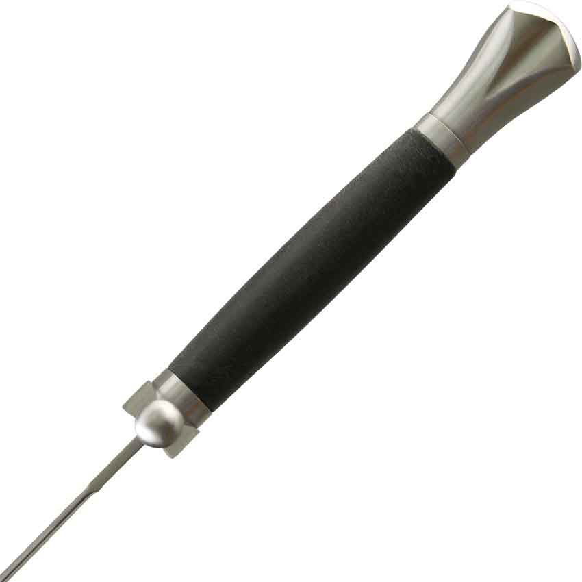- Features steel quillons and a leather hardwood grip
