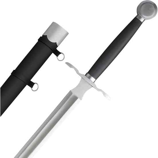- Features a curved steel guard and wheel pommel