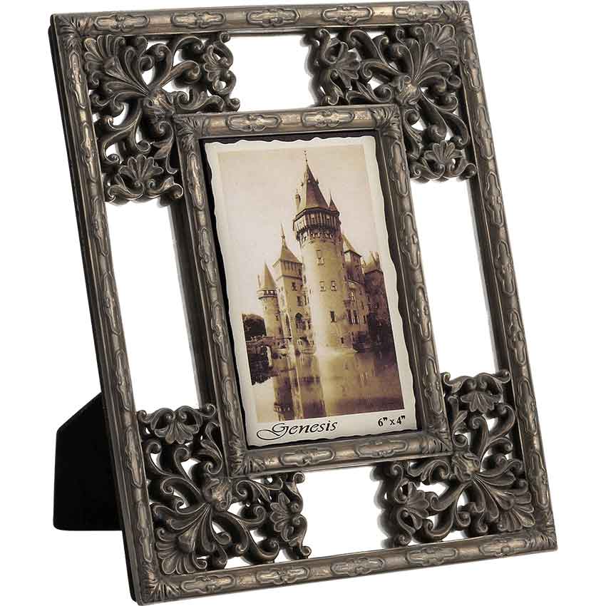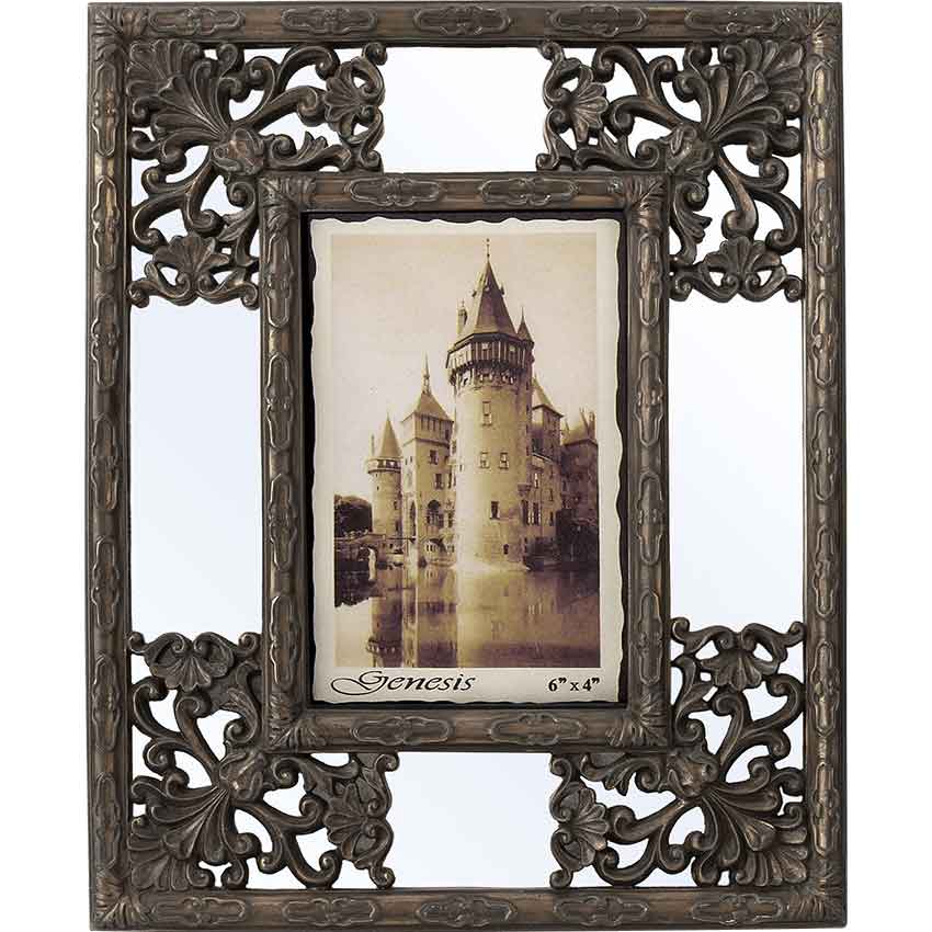 If you want to add some medieval style to your modern photographs, then make sure that you check out the Abbey Picture Frame. Made from cold-cast bronze, this hand-painted picture frame fits 6 by 4-inch photos, not included. It has an open rectangular design with an outer frame and an inner one. The inner frame wraps around the photo. Both the inner and outer frames have scrolled loop detailing with foliage at the corners. Larger, more intricate foliage and scrollwork designs fill in the corners between the two frames. There is a mirror underneath the scrollwork. On the back, there is a flap for standing the frame up. This picture frame makes a great addition to any home or office space. The Abbey Picture Frame looks right at home in a variety of decors.