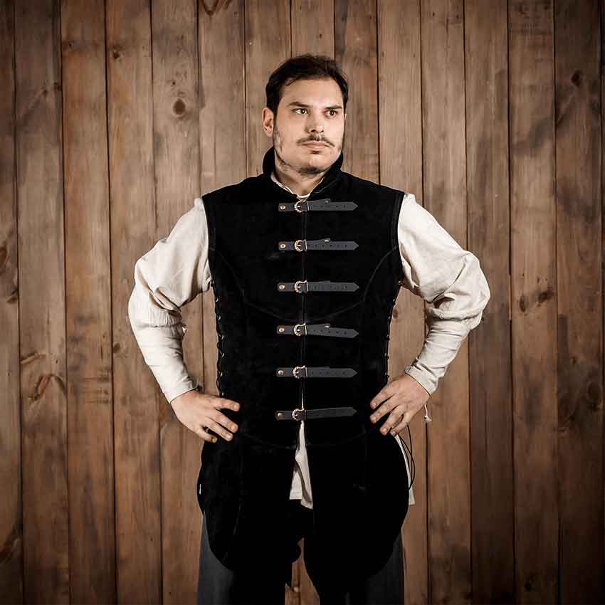 Whether you are embodying a mighty knight or a cunning rogue, the Adrian Jerkin adapts flawlessly, comfortably ending just near the knees in a style recognizable across the realms. The short collar adds a dash of sophistication, reflecting an attention to the finer historical and fantasy details – because when you are committed to your role, every detail counts.