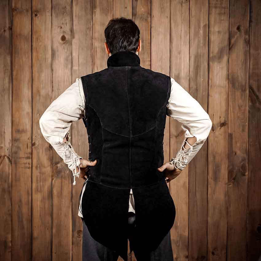Introducing the Black Adrian Suede Leather Jerkin, a game-changing garment for those who seek authenticity and comfort in their persona portrayal. Crafted for connoisseurs, this jerkin is far from mere costume wear – it is a piece that elevates your experience, making every role more immersive.