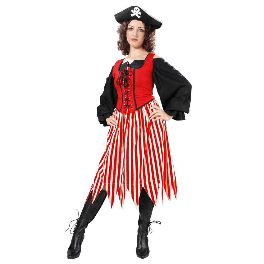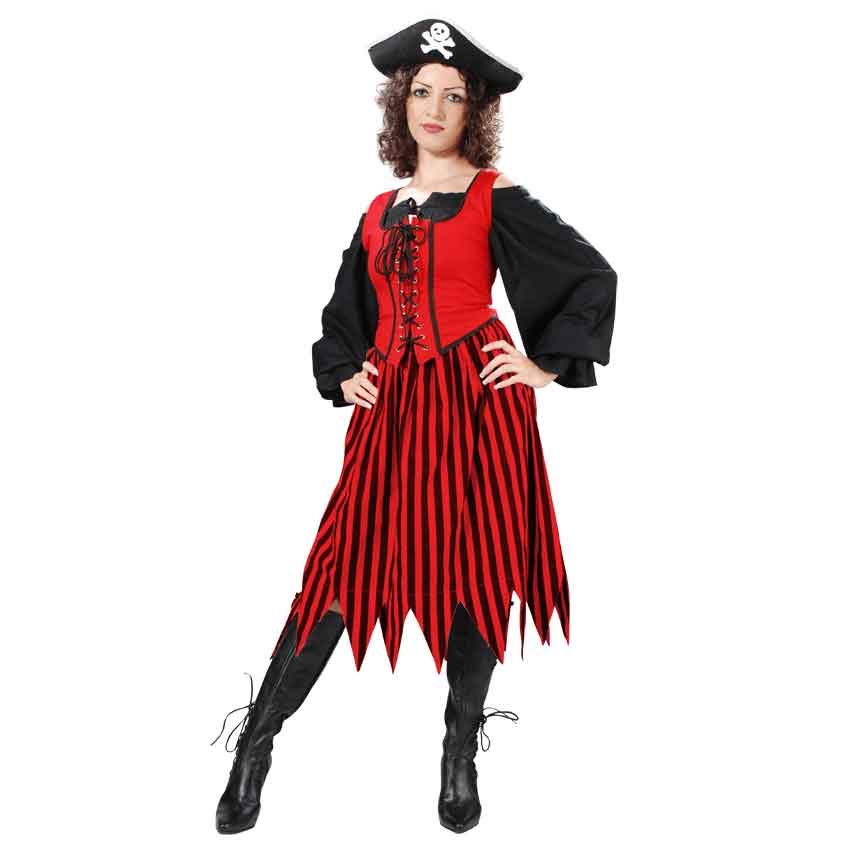 The Alvilda Striped Skirt is made of 100 percent cotton fabric. The skirt has a pirate trademark striped design with a zig-zag pattern at the hem line. The Alvilda Striped Skirt has an elastic waist for easy and comfortable wearing. This pirate shirt is machine washable and would add the perfect finishing touch to a pirate outfit.