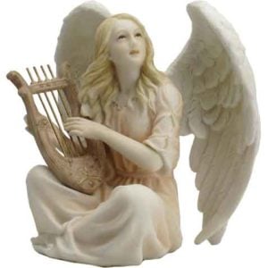Soft and beautiful, an angel plucks a lyre in the Angel with Lyre Statue. Made from polystone, the features of the angel are gentle and demure. Her kind face is framed by wheat gold hair and her pale peach robe gives the whole statue a heavenly glow. Her wings are finely detailed and every feather is precisely, and her delicate fingers pluck a heavenly tune from her lyre. With the Angle with Lyre Statue, you will have a heavenly piece to add to your home.
