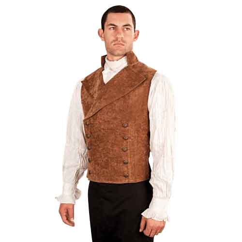 Inspired and named after the Victorian fashions that might be seen strolling down a certain street in merry old London, this Baker Street Vest is the perfect picture of casual comfort for a gentleman that wants to look their best, at all times. Avid fans will instantly recognize the name, as Baker Street is the location of the apartment of one Sherlock Holmes, and this vest goes great towards the creation of a look befitting that legendary detective. The vest is made from velvet and offered in either brown or black. It features a tall back collar and peaked lapels, as well as a double-breasted front for that truly formal and sophisticated look. The vest is satin-backed, while also featuring a rear adjustable belt tie, which allows the waist of the vest to be taken in to give it the perfect fit. This Baker Street Vest is the start of a stellar look, one that would serve well any gentleman of note, whether he is meeting with a client, strolling the streets, or investigating a new mystery.