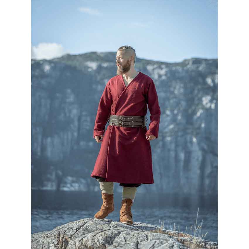 The Red Balder Wool Viking Coat makes a great overlayer for all kinds of historical or fantasy looks. Layer this long Norse jacket around just about any kind of outfit, whether dressing as a Norse warrior, medieval adventurer, or sorcerer.