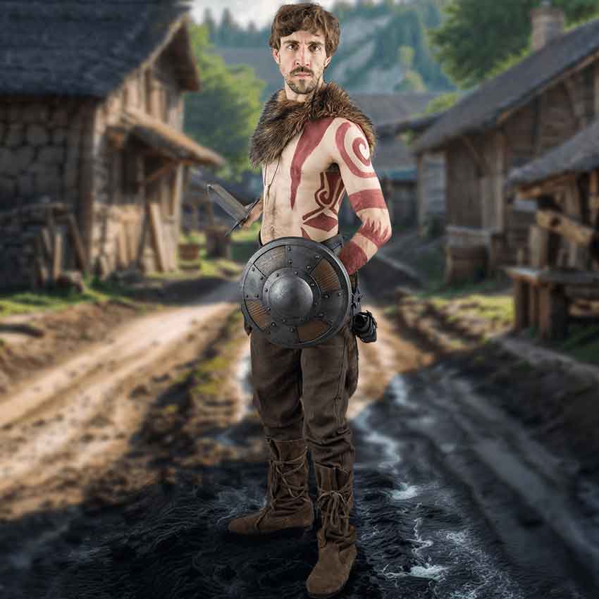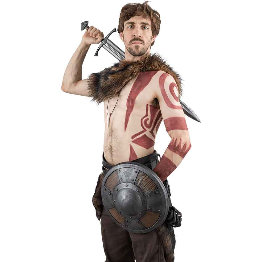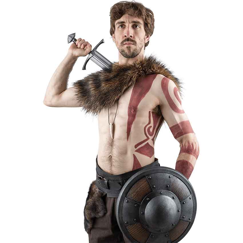 But what really sets this men’s warrior outfit apart is its near limitless style possibilities using the optional accessories and weaponry. Strike fear into the hearts of any who behold you. Choose the Orbek LARP Short Sword to prepare for epic LARP battles while keeping yourself protected with the Swash Buckler LARP Shield. Accessorize with the Bone Wyverntooth Necklace so you can show off a trophy from your character’s backstory. Adorn yourself with the Geralt Diagonal Sword to add depth and practicality to your look. You can also add on the optional Godwin Canvas Tunic to make this outfit appropriate for different weather conditions, convention rules, or to even build a women’s barbarian look as well. Whether you’re exploring the ruins of ancient strongholds or attending thriving medieval and fantasy settlements, you can be the stunning center point at any costume party with this men’s Barbarian warrior outfit.