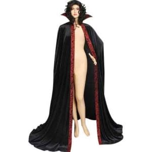A good vampire does not necessarily need a cape, but if you are going for that classic, medieval, or gothic vampire styled look, then you are going to need a good cape, like the Black and Red Dracula Cape, named for the most famous vampire of all. This sleek and stylish cape is made from velour, which captures the texture and appearance of crushed velvet perfectly, while simultaneously remaining a light-weight fabric. This cloak features a high-backed collar as a part of its design, and it features a red border that’s decorated with black designs. It secures with a tie at the neck. The cloak is only available in the color black, and is available in sizes small, medium, large, and x-large. And just because this is the Black and Red Dracula Cape does not mean it is for vampires only. The cape does wonders for any creature of the night, or for anyone who wants to create a medieval or renaissance look that is as dark and gothic as it is stylish and sleek.