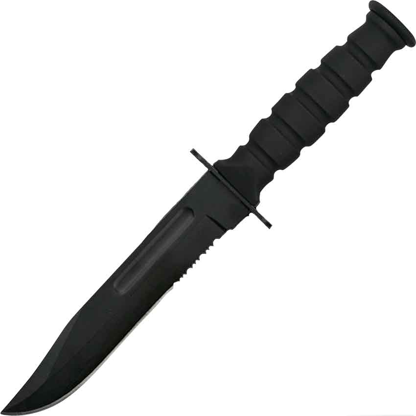 For your next survival task, make sure that you have a knife up for the job. Check out the Black Serrated Bowie Knife. Made from 3Cr13 stainless steel, this functional knife features a clip-point blade, typical of a bowie knife. The black full-tang blade has a fuller running down half of its length. At the base of the blades edge, there is a short, serrated section.