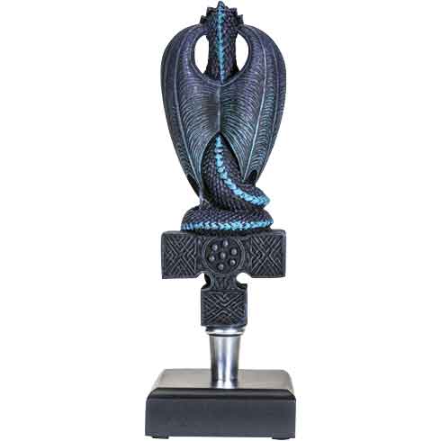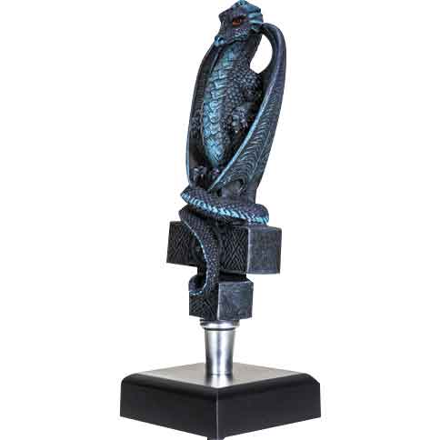 Dragons will gleefully watch over treasure. The Blue Dragon Beer Tap Handle keeps an intent and watchful gaze over your favorite beverage. This magical creature will also stand guard over any bar that it inhabits. Made from cold-cast resin, this hand-painted fantasy beer tap has a fierce, draconic design.