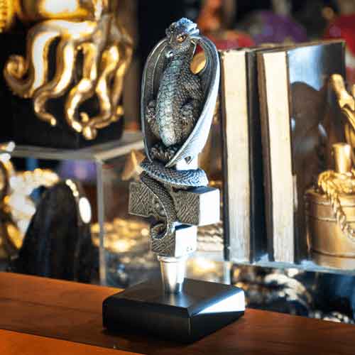 The beer tap comes with an MDF display stand. The display stand has a square shape and short feet on the bottom. This dragon beer tap makes a great decor piece to put on display. You can, of course, use the dragon barware item in your fantasy-themed home bar.