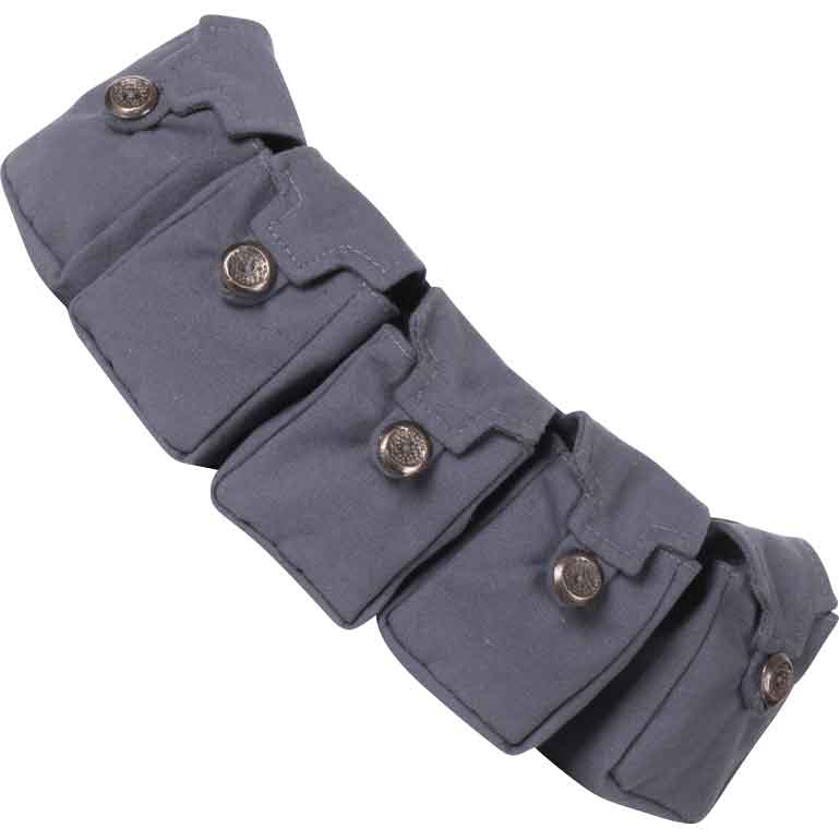 The canvas is a good and durable material, a nice alternative to leather. The stitching is tidy and the cloth isn’t frayed. It can be nice to have a series of smaller pouches in a row for some outfits. The belt is long enough that it can be worn around the waist or across the chest like a bandoleer.