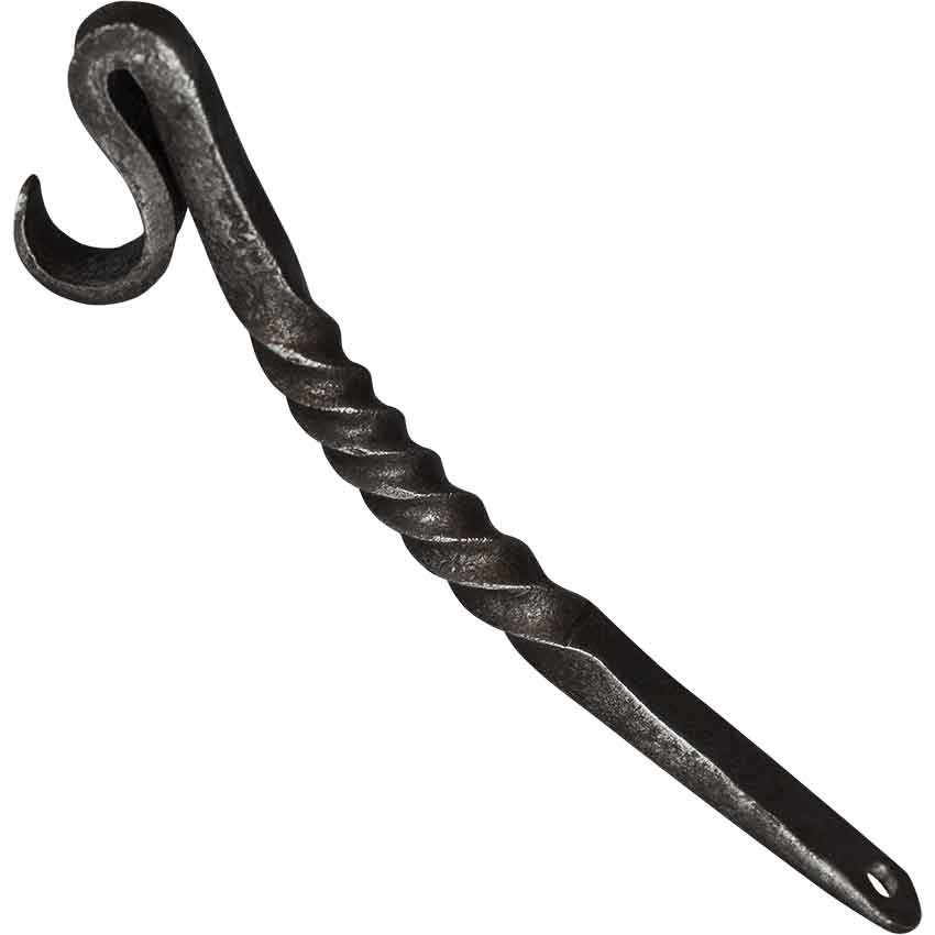 Tavern keeper, make sure that you have a way to pull caps off of bottles. You should check out the Bosco Bottle Opener and its medieval look. Made from steel, this bottle opener has a forged appearance. On one end, it has a curved S-shape, perfect for pulling the caps off of bottles. Then, the opener continues with a twisted handle. It ends with a flat section. There is a hole at the end. The hole makes adding a cord easy. A cord does not come included. The Bosco Bottle Opener looks equally great at a Ren faire or reenactment as well as a modern kitchen or bar.