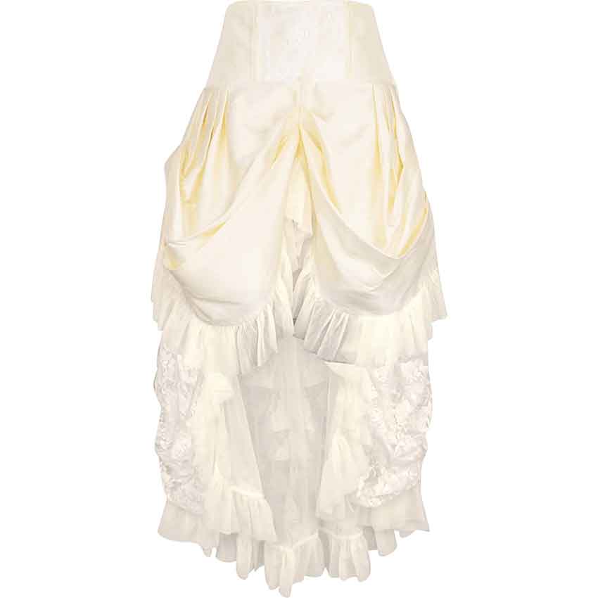 The Briallan Ivory Victorian Skirt adds layers of elegance to your look. This historical skirt is made of gorgeous ivory taffeta and lace. Its beautiful draping will bring drama and romance to your gothic, Victorian, and other historical costumes.