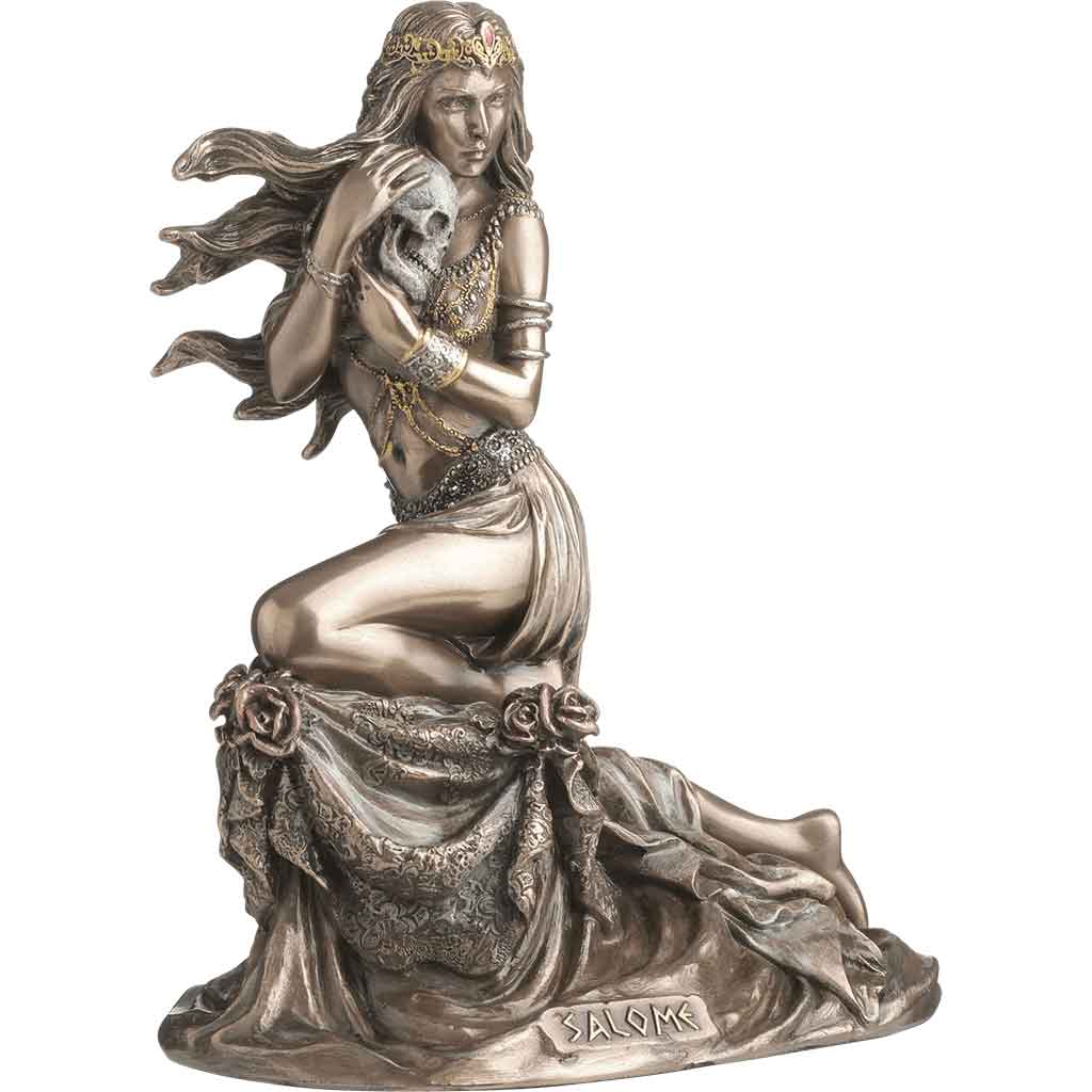 With every glance, this detailed fantasy statue hints at a history of ambition, danger, and political machinations. Salome is often considered a symbol of seduction and destruction in equal measure. This bronze Bible statue reflects beauty and peril in your home decor as a part of your statue collection. Place this biblical figure on your shelf, nightstand, or other settings in your abode as an eye-catching decoration. Make this biblical Salome statue a gift for a loved one.