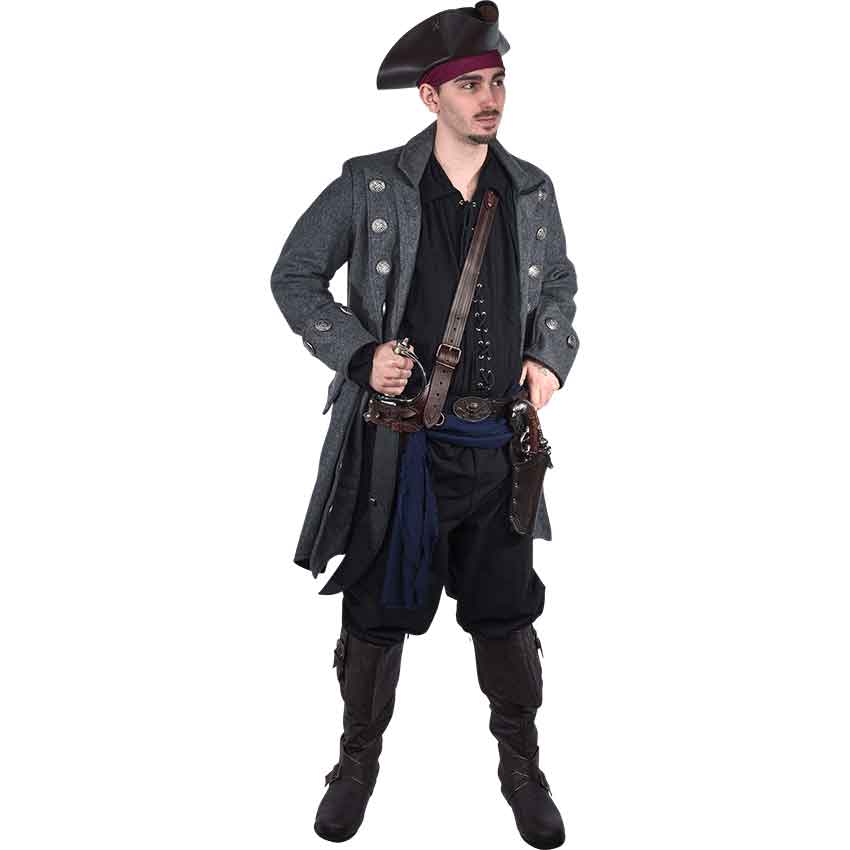 Whether you are sailing the high seas or on land looking for treasure, the Buccaneer Hayes Pirate Outfit is perfect for any pirate adventure. To begin with, this bundle includes a coat, shirt, and a pair of pants. The coat and pants come in multiple colors and sizes. Meanwhile, the black shirt is available in four sizes. Together, the pieces allow you to choose from a range of options for what best suits your pirate or buccaneer ensemble.