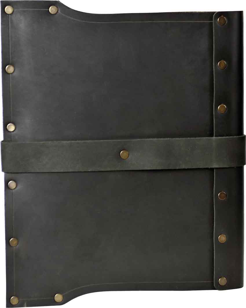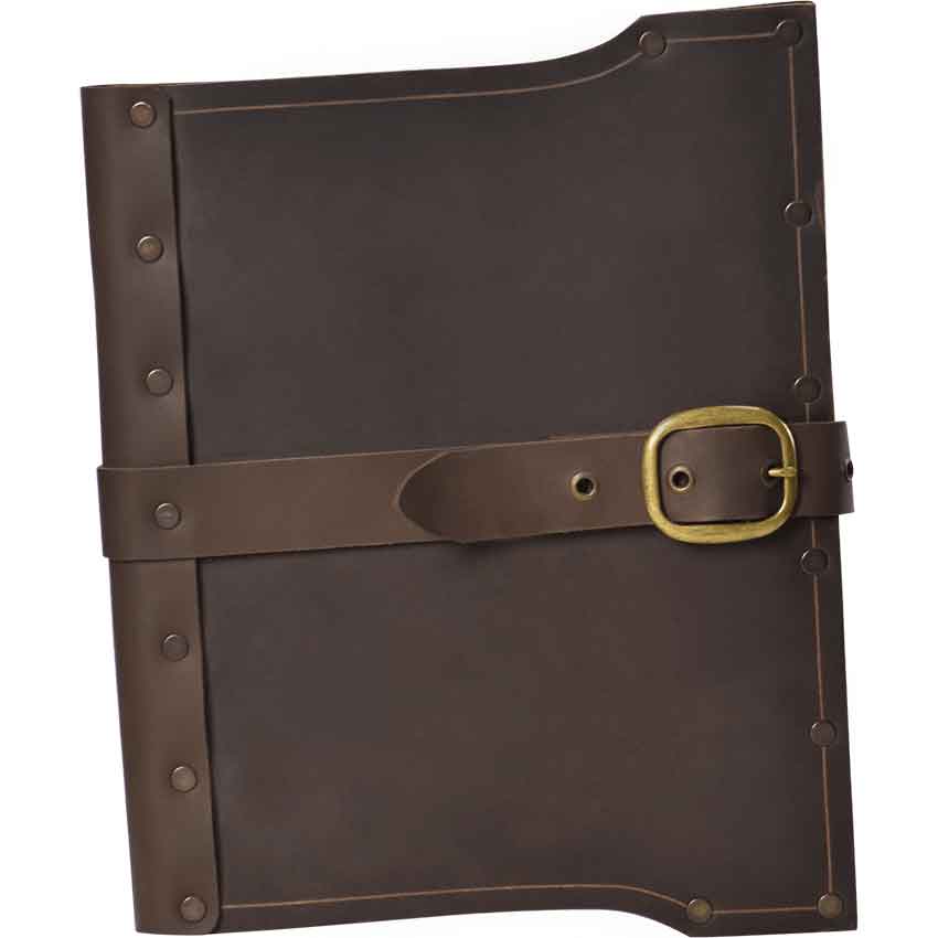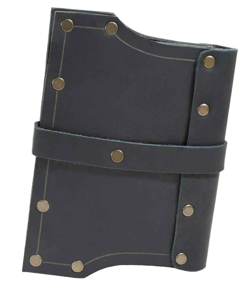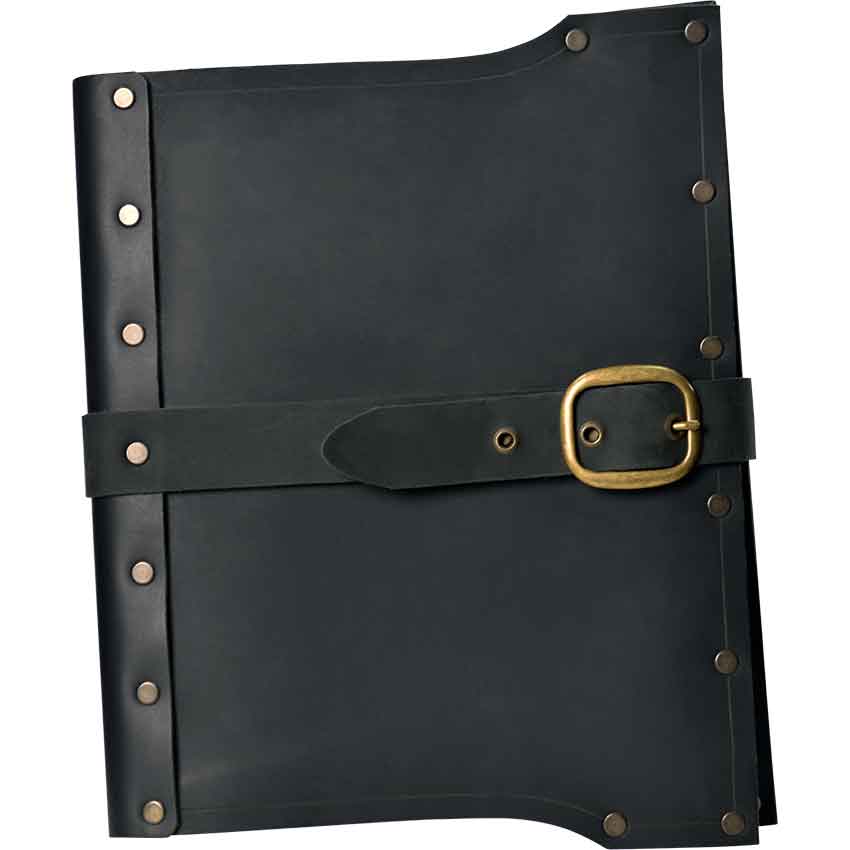 Take the Buckled Spellbook Journal when you head out on a grand adventure or decide to dive deep into the world of arcane magic. Made from 5-6-ounce vegetable-tanned leather, this notebook comes in two colors and sizes. Each notebook fastens closed with a 9-10-ounce strap and a brass-plated buckle in front. Along the spine of the notebook, there is a top piece of leather to add strength. Rivets secure it to the front and back covers. Both covers have top and bottom edges that curve outward and then have straight sections away from the spine. Rivets adorn the outer edge. On the inside, there is a removable book with 100 ivory-colored sheets of paper. The Buckled Spellbook Journal is great for a variety of tasks, from writing to drawing and more.