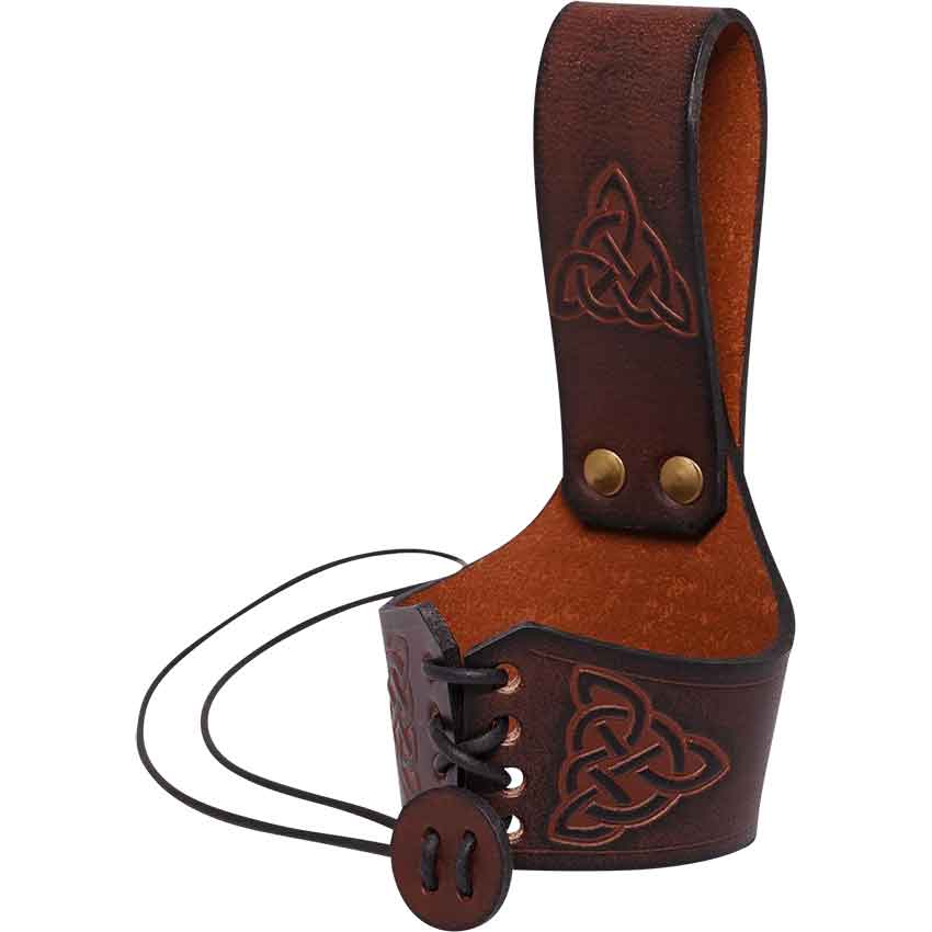 Imbue your historical escapades with the spirit of the Celts. Make the Brown Celtic Leather Drinking Horn Holder your companion in your next venture into the realms of history and fantasy.