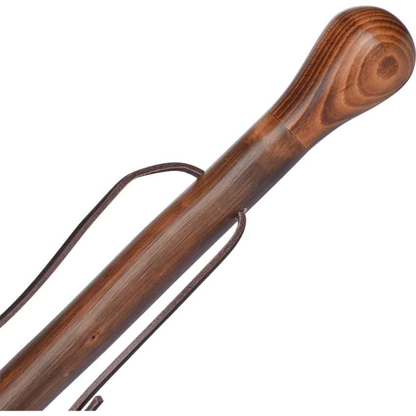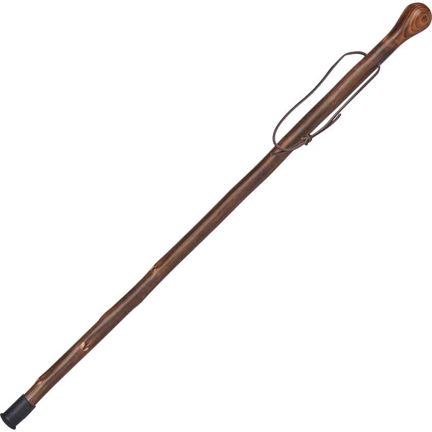 This walking stick is a hand-carved masterpiece that is made from genuine natural Chestnut wood. The shaft has been turned, scorched, and stained to give it an artistic finish. Our Chestnut Walking Stick has a fitted, sanded knob handle and a leather strap. The Chestnut Walking Stick has an overall length of 36 Inches with rubber tip. This medieval walking stick is perfect for daily walks out on trails or just getting around at a Renaissance faire. These walking sticks look great and add a bit of extra style to your medieval or Renaissance look. Our Walking staffs are made with natural woods, carved handles, and gorgeous inlays that are sure to give any person walking with them something to show off and be proud of.