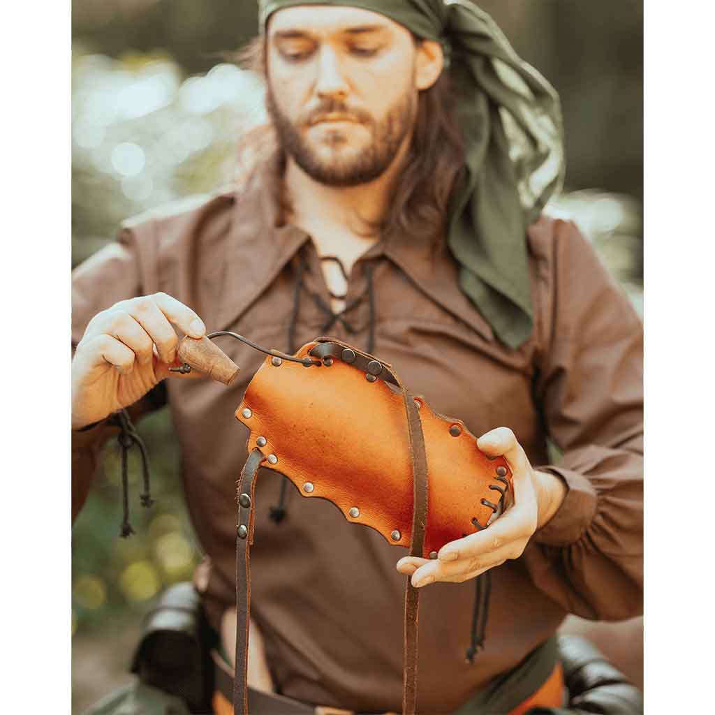 Stay hydrated throughout your adventures with the Doran Water Bottle. This authentic looking water bottle is covered in high-quality leather and adorned with rivets, but the inner lining of the bottle itself is made of food and drink safe PET material. Easy to clean, the bottle is sealed with a wooden plug attached to the leather casing with a cord. The long leather strap makes it easy to stay hydrated on the go, as you can simply toss this water bottle over your shoulder and carry it with you wherever the battle takes you.