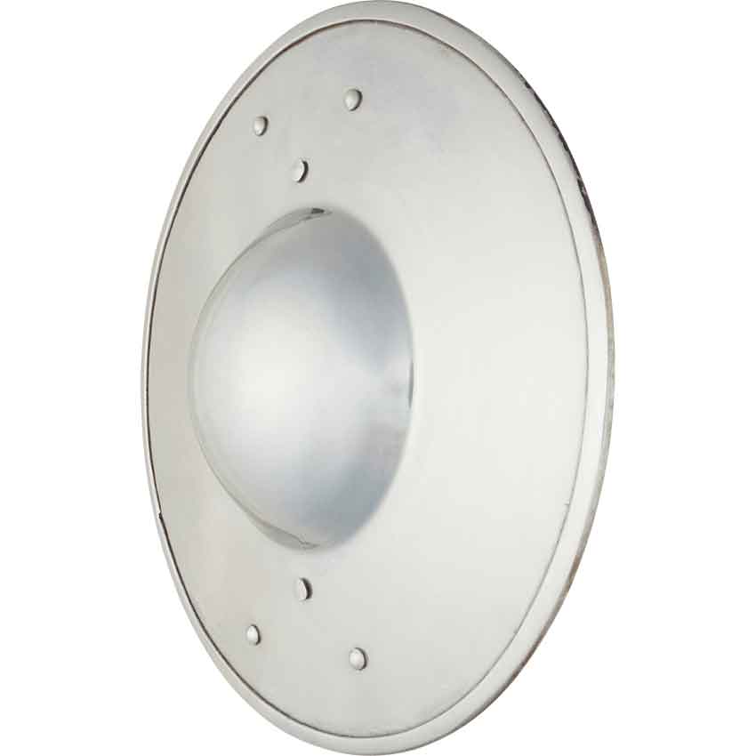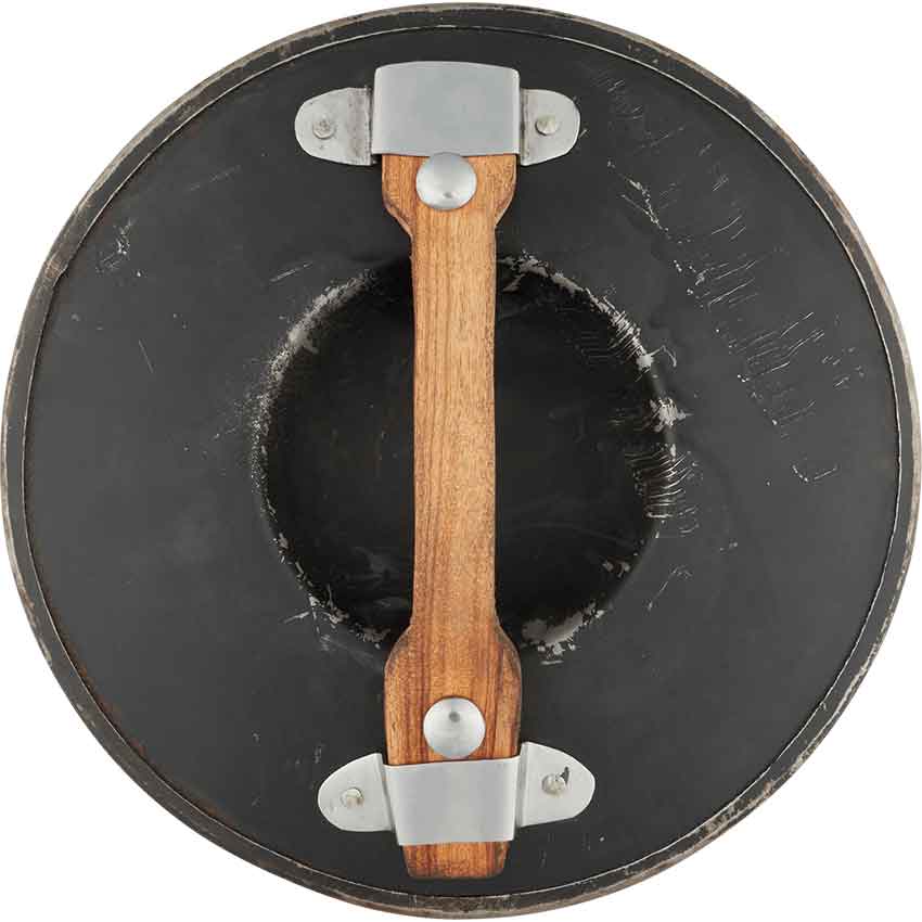 Looking to wield a buckler alongside your weapon in battle? If you want a buckler, make sure to check out the Dordrecht Steel Buckler. Made from 14 gauge 1060 high carbon steel, this functional buckler features rolled edges and a natural finish on the front. Based on a buckler found in Dordrecht, it has a central boss. Metal straps secure the wooden handle to the back of the shield. The handle is narrower behind the boss and wider near the metal straps. Rivets attach the metal straps to the buckler. The handle has large bolts going through them as well. In addition, the back of the buckler has a dark finish. The Dordrecht Steel Buckler will serve you well at your next historical reenactment event.