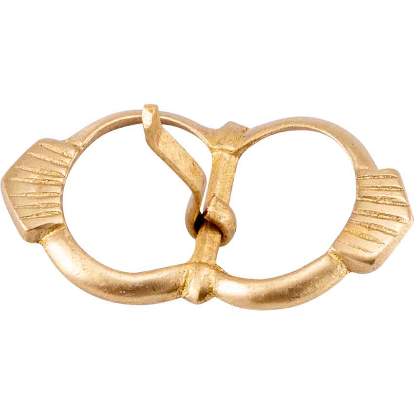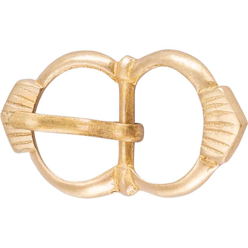 The Double Deco Belt Buckle is great for DIYers looking for that perfect buckle for their project. This double-sided belt buckle features a pentagonal shape with slight ridges on both sides of the buckle. This design detail comes straight out of the Art Deco era. The buckle fastens with a pin and can be attached to a strap, not included. This polished brass buckle is understated enough to work with a variety of eras and genres. Wear it as a part of your casual everyday wear or as part of a fantasy or historical costume.