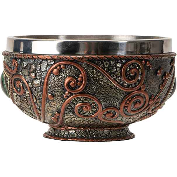 Dragons have always been staple icons of fantasy, and this medieval dragon bowl delivers a unique style. Each detail is lovingly hand-painted. The bowl is also crafted from stainless steel and cold-cast resin, showcasing a truly inspired design. All around the bowl are intricate dragon-themed designs, from the open eye to the myriad of scales around it.