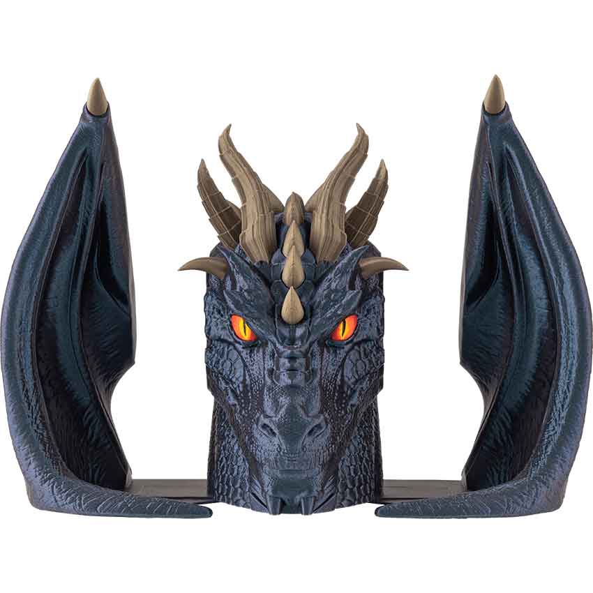 This 3D printed dragon, crafted by Dragon Forge Leather right here in the USA from PLA filament, is an excellent way to protect and display your books in your own magical library. This bookend set comes as three pieces: two wings and a dragon’s head. With realistic features like intricate scales, horns, and wings, the dragon strikes a fearsome presence among your collection of arcane tomes and books, not included.