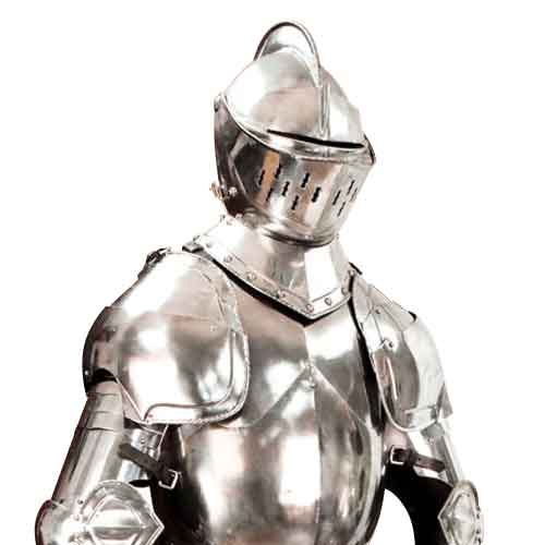 The 15th century was a bloody one for Europe, although all the conflicts of the age did have a positive effect. All this conflict led to the improvement of plate armor, which gave us such forms of protection like this Duke of Burgundy Suit of Armor. This suit of armor is modeled after typical suits of Italian plate armor out of the 1450s, possessing a distinctive look that was simply enough for the everyday warrior yet stunning enough to be featured in premier socialites and nobles who fancied themselves as true knights. As was typical of some earlier Italian armor, this suit possesses more smoothed edges, which helps to streamline the armors look, while also ensuring that blows from lances, swords, and more slide right off the armors edges. It is hand forged entirely from 18 gauge steel, which helps to make it as stout and sturdy as the original armor. This symbol of the knightly age comes partially assembled and is fully articulated. It also features a decorative war skirt, to help improve the armors already considerable look. An included skeletonized frame makes it easy to store and display this armor, transforming it into a display that is worthy of sitting in your hallway or office, and when you wish to, you can also remove the armor from its frame and wear it, to make yourself look more like a knight from the late middle ages. On the stand, the armor measures approximately 7 feet tall. The Duke of Burgundy Suit of Armor does double-duty with remarkable ease, allowing you to set it up in your home as a brilliant display that pays homage to the knights of old, as well as being a functional suit of armor that you can wear from time to time, to create the perfect knightly costume! This armor is crafted by Windlass Steelcrafts.