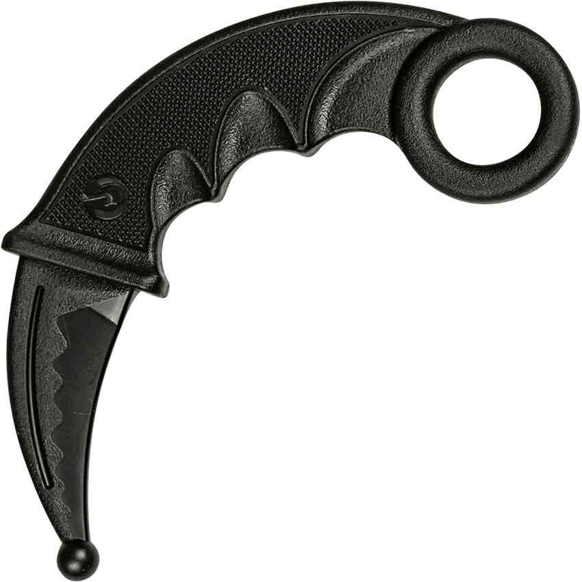 Inspired by the claws of big cats, the karambit is a small, curved knife of southeast Asia. This Ebony Training Karambit is made of polypropylene, a durable polymer, so you may learn to wield it without injuring yourself or others. In its original form, the karambit was an agricultural tool used primarily on crops, and now is included in the crest of the Royal Malaysian Police. Karambits are found in the video games Counter-Strike Global Offensive and Splinter Cell Blacklist. The tip of the training karambit is rounded for safety. The Ebony Training Karambit makes a terrific gift for Asian weapons enthusiasts, combat cosplayers, and fans of Counter-Strike or Splinter Cell video games.