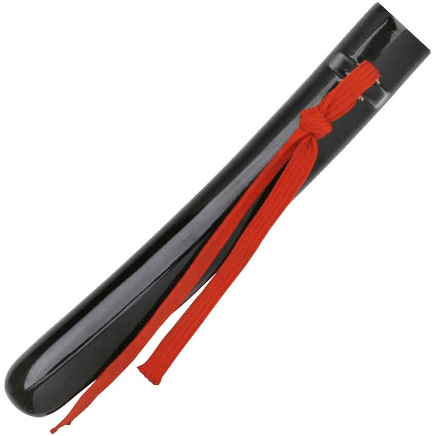 Having completed the assigned tasks, the student stands before the tribunal. He finds peace within while they deliberate. Soon the weaponsmaster approaches, offering the Elegant Samurai Tanto as confirmation of his new status. The fullered blade of the ornamental tanto is made from 6mm carbon steel. The handle is covered in authentic ray skin then wrapped in black leather. This ceremonial tanto comes with a black lacquer scabbard and a black carrying bag. While made from medium-carbon steel, this tanto lends an ornamental style and position rather than being suited for combat.