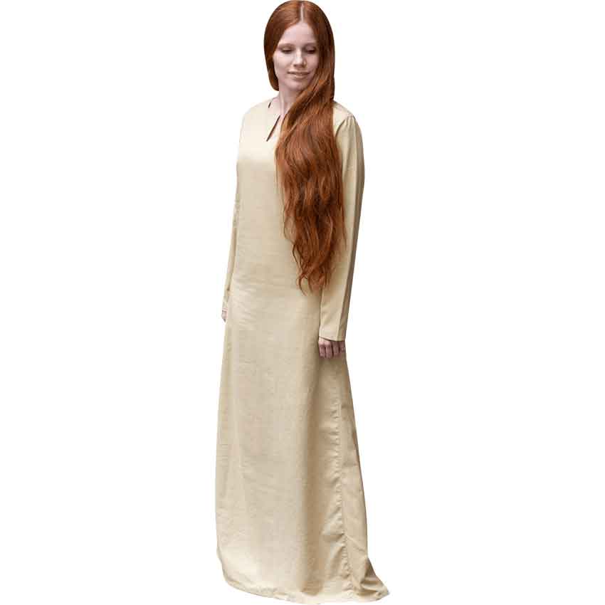 You can layer the Elisa Summer Underdress with many of your favorite historically themed garments to create a medieval or Viking outfit. Made from 100 percent cotton, this loosely cut underdress comes in three colors and a range of sizes. The full-length dress has long sleeves and a V-cut neckline. Next, the skirt of the underdress has a slight A-shape, giving it a nice volume. You can slip on the underdress over you head. This medieval underdress works well with a variety of styles and characters. Wear the Elisa Summer Underdress to a reenactment, LARP event, or cosplay convention.
