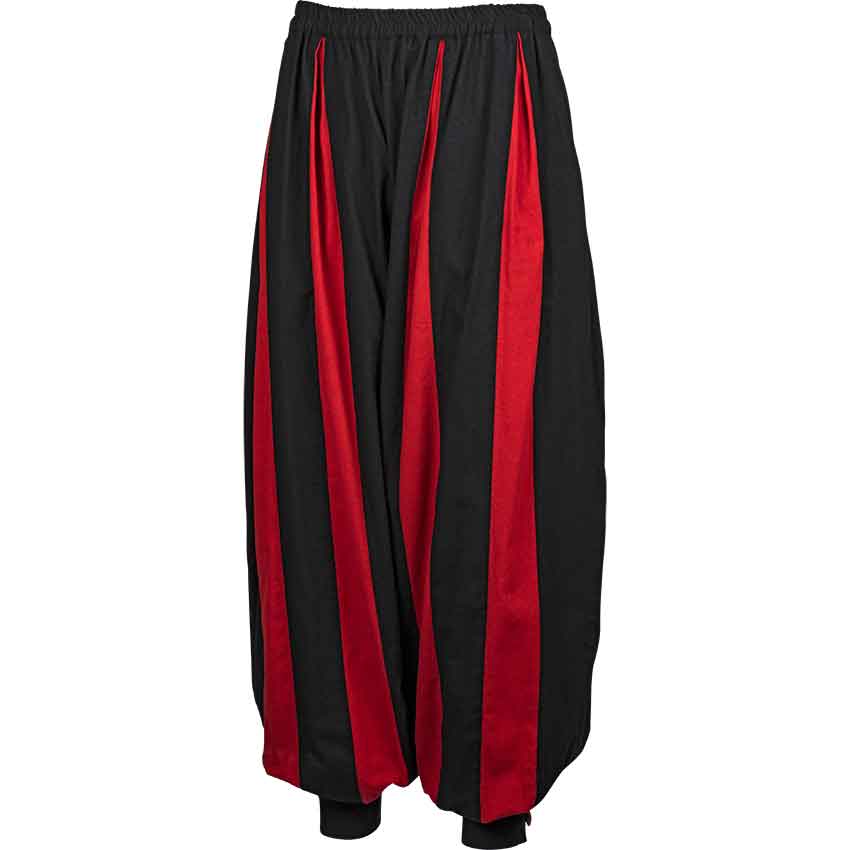 This pair of pants has full-length legs that are quite loose-fitting and baggy, although the extra fabric does not get in the way of a typical range of motion. The legs also feature a striped pattern that starts at the waist and extends downward toward the ankle in an inverted triangle shape. Add a pair of these European Styled Pants to your wardrobe and you will see just how useful they can be. You will soon find yourself adding this comfortable, striped pair of pants to all manner of costumes and styles, ranging from the adventurous to the noble, to the down-right pirate-y.