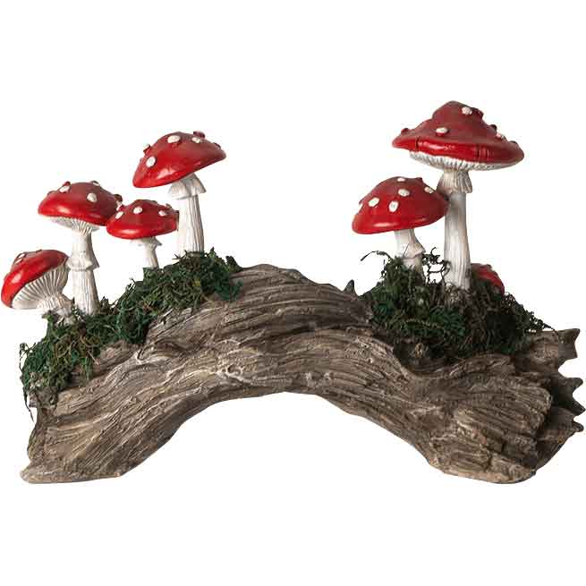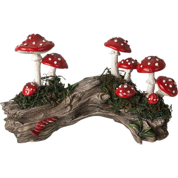 Perfect for fairy gardens and your whimsical statue collection, this fairy garden log statue is a must-have. This mushroom log statue is made from cold-cast resin. Every detail has been painted by hand, showing off a true passion for art.