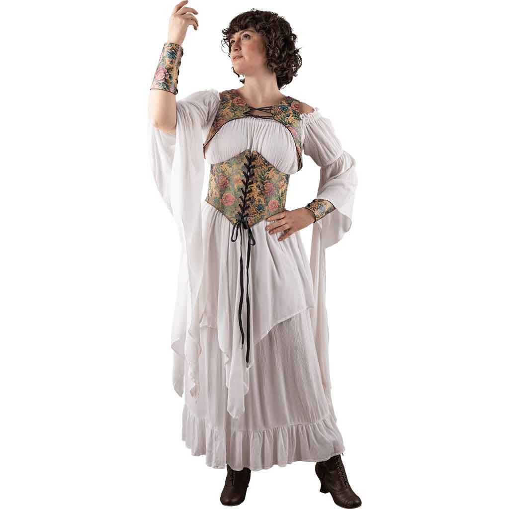 But what really sets this women’s outfit apart is its near limitless style possibilities thanks to its optional accessories. Wear the Fairy Garden Leather Corset, Snap Front Waist Cincher, or Leather Waist Cincher around your waist for a complete elegant look. Show off these stunning pink and blue leather accessories wearing the comfortable and elegant Lightweight Medieval Maiden Dress as a base layer. Even better, each optional item can be personalized to bring out the best of your outfit. Whether you’re adopting a new style or attending bustling fantasy events, you can be the stunning center point wearing this women’s medieval fantasy leather costume.
