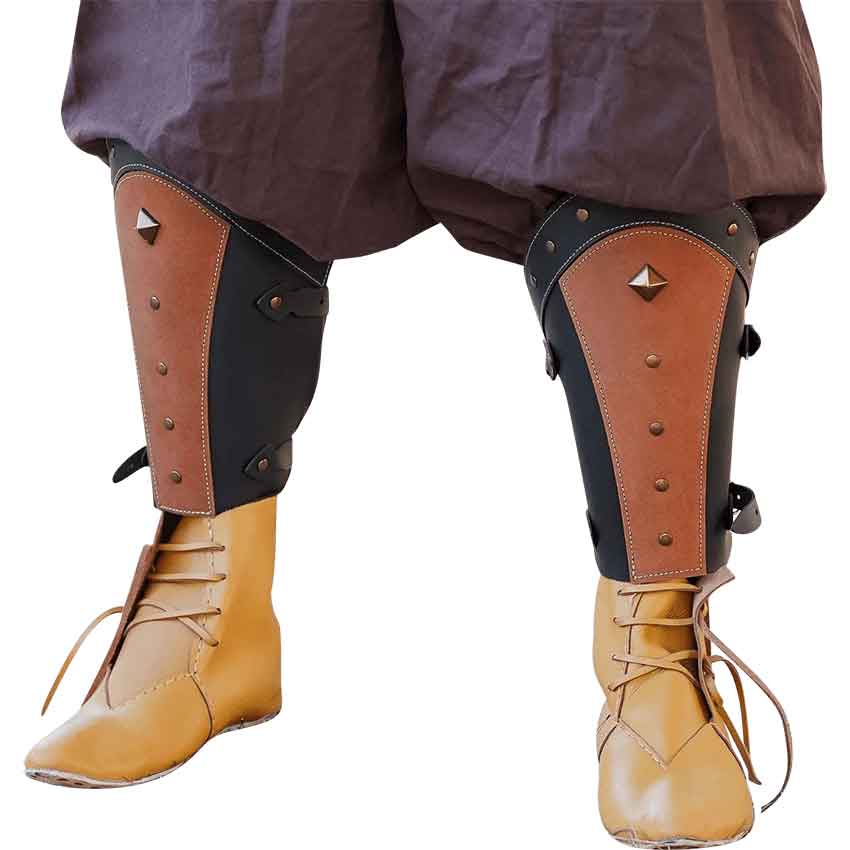 Crafted with precision, the black greaves feature angled sides with straight edges near the ankles and convex curves near the knees. The brown central panel design adds an extra touch of style to your costume.
