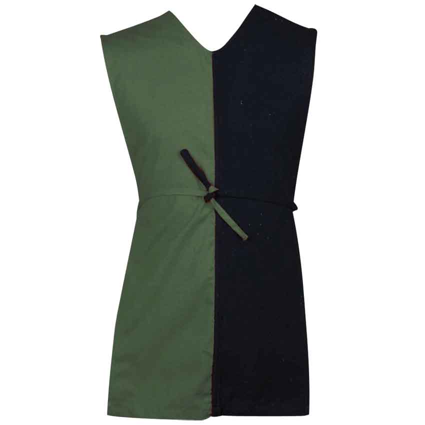 The Felix Childrens Tabbard is a colorful way for children to get in on the fun of historical reenactment. This medieval style garment is easy to wear and comes in an assortment of bright and contrasting color combinations, sure to delight their young wearers. The colors of these tunic style tops are split vertically in the middle, with one side featuring a bright color, like red or green, while the other features a neutral hue, such as black or cream. The tabard is put on over the head and adjusted with fabric ties on the sides of the garment, making it a breeze to wear and simplifying the process of dressing even the most impatient of children.