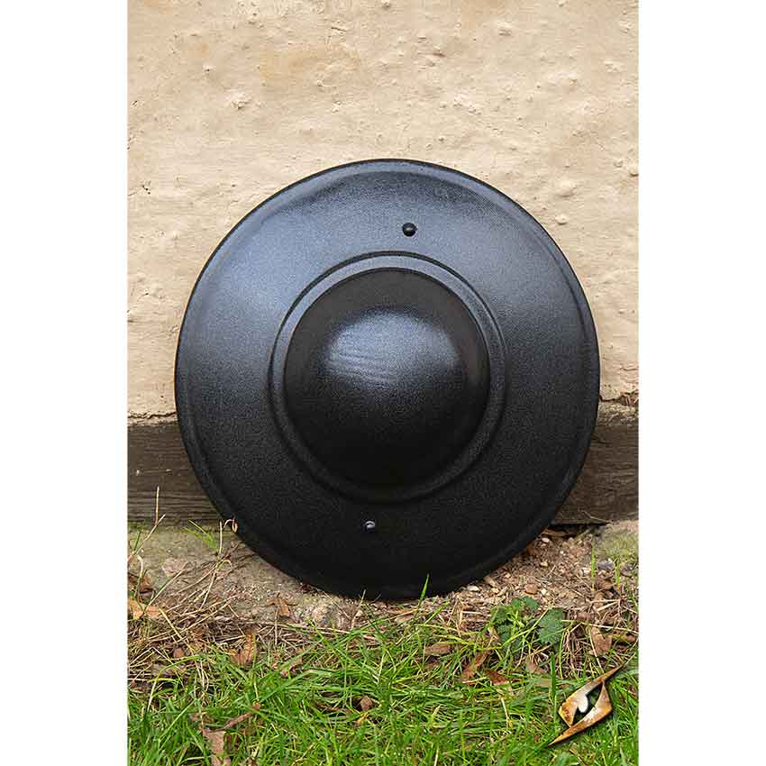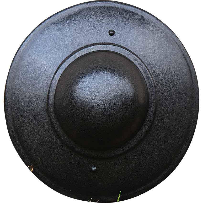 Whether you are a dashing knight or a cunning rogue, having a small shield like the Dark Silver Fencing LARP Buckler on hand is always a great idea. Crafted from hard EVA foam, this LARP shield has a latex coating and a durable construction. It has a dark silver color. Also, the buckler has a slightly domed base with a central boss. Highly realistic, this shield looks like its steel counterpart. Two simulated rivets adorn the front of the buckler next to the boss. On the back, the buckler has a black finish. Also, there is a bar with pointed ends, working as a grip in the center of the boss. The Dark Silver Fencing LARP Buckler looks right at home in a Renaissance faire, LARP battle, or cosplay event.