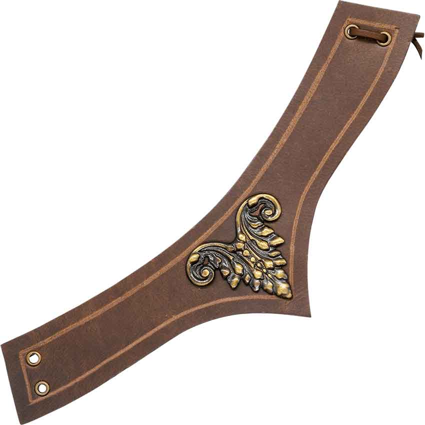 Step into a realm of enchantment and valor with the Brown Florence Medieval Leather Band. Crafted from brown leather, this piece embodies medieval grace and durability. Its unique curved design, culminating in an elegant point at the center, is reminiscent of the noble crowns and belts that once adorned the heroes of yore.