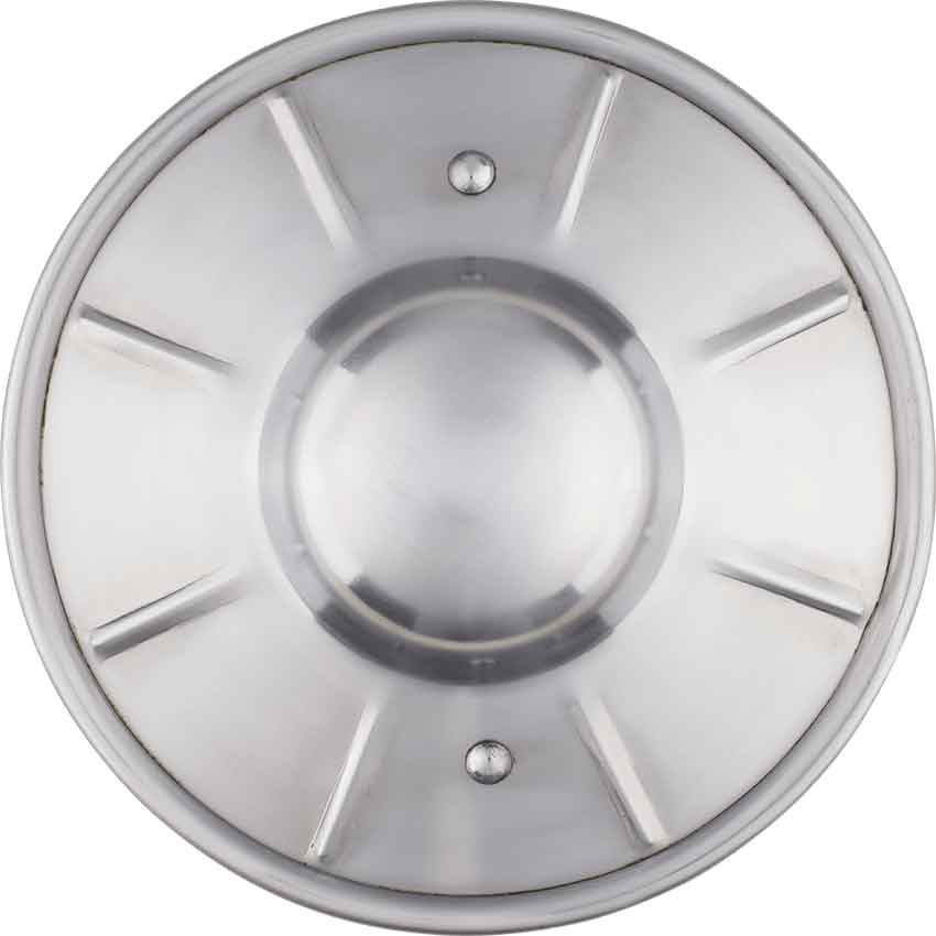 Do you want to carry a small shield in your off-hand while you fight in battle? If so, check out the 9 Inch Fluted Buckler. Crafted in 14-gauge steel, this medieval buckler features a polished finish on its central boss and rolled edges. Ridges, or flutes, radiate out from the center boss. On the back, there is a steel tube handle. Rivets secure the handle in place. This buckler fits a wide range of aesthetics. It looks right at home with styles from the 12th to the 18th century. This buckler has a sleek design that is ideal for a historical reenactment.