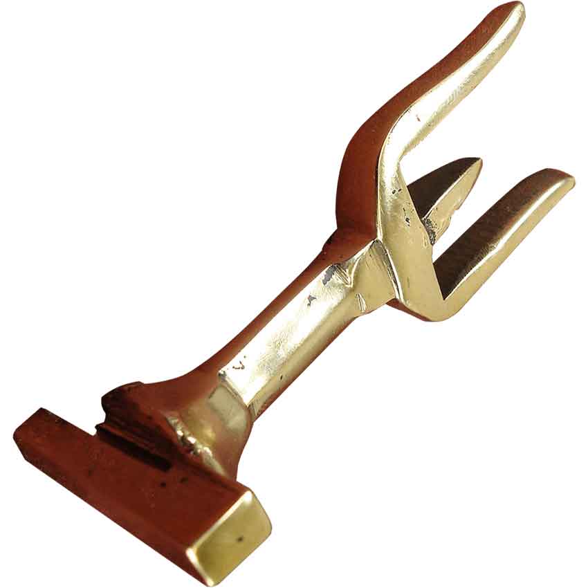 When you own a helmet, you want to present it in the most dramatic style as you possibly can. The Front-to-Back Plume Holder allows you to put your historical helmets on display with a plume to give it added flair. This plume holder is used to secure a crest to a Roman helmet. The brass holder slides into its slot, the crest is put atop the fork-like prong, and the plume has its ends tied to the helmet to securely affix it into place. This plume holder is for a front of the head to back of the head crest alignment, and it works with wooden or metal crest boxes. Most of our Roman helms that begin with AH- will fit this holder. Helmets must have receiver bracket on top to use this holder.