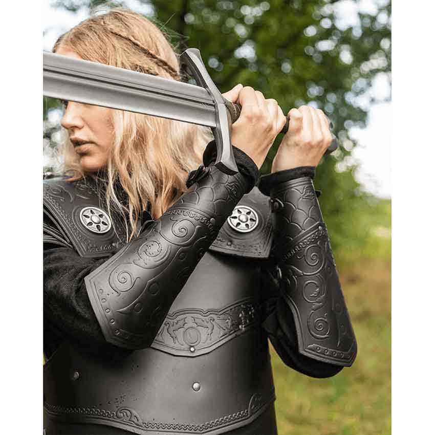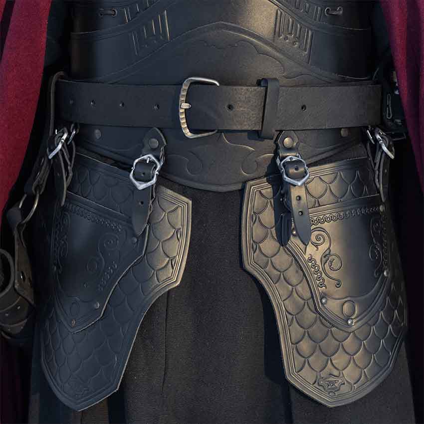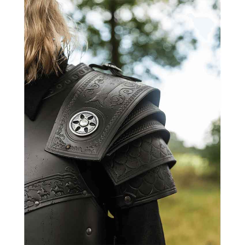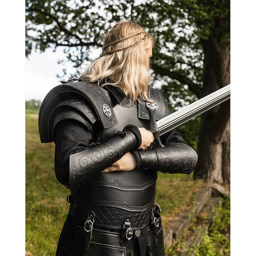 You wish to become a legend, a hero for all time. You fight many battles while wearing the Gawain Armour Set. There is little doubt of your victory. To begin with, this package deal includes all pieces of the Gawain armour. Therefore, you will receive a pair of greaves, tassets, bracers, spaulders, and a cuirass. All of the pieces come in either black or brown color options. This set makes it much easier to buy multiple, matching pieces of armour at once. Best of all, you will save 5% on the set. This armour set is great for medieval and fantasy characters at roleplaying events such as a LARP battle or cosplay convention. You can even wear it in a theatrical production.