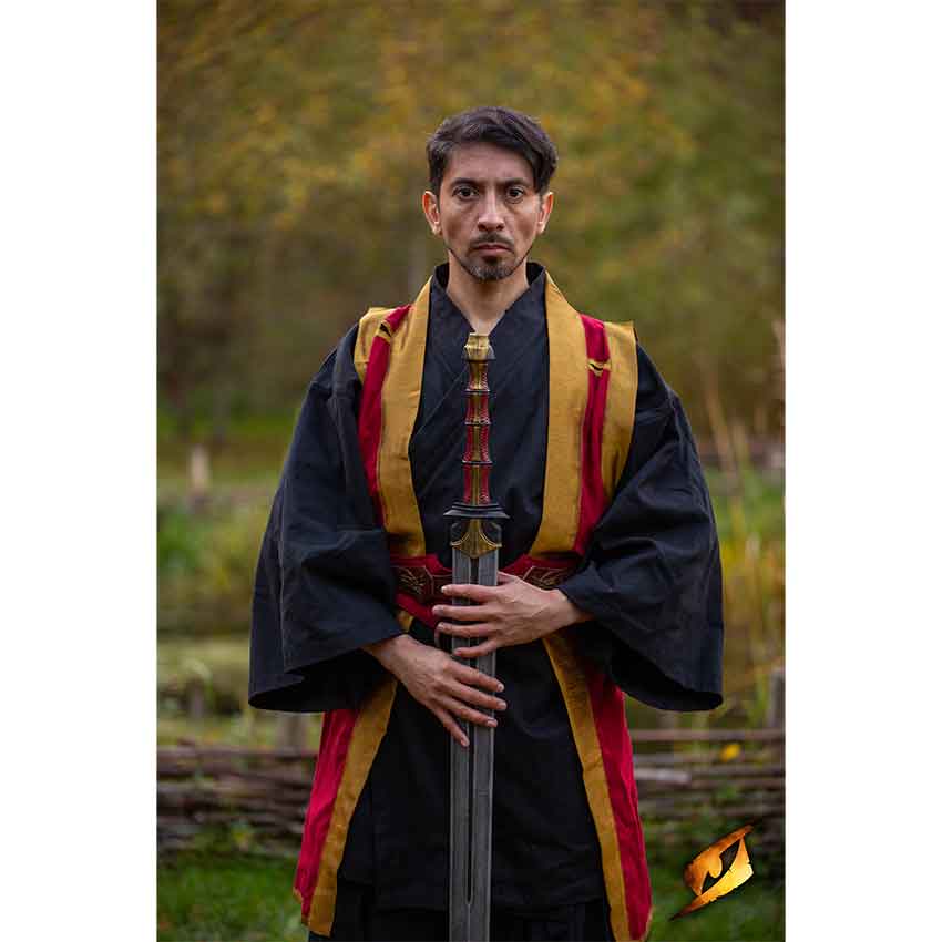 - Versatile Grip: Red scaled handle with a golden stripe, suitable for one or two-handed combat, featuring ridges for an enhanced, secure grip.