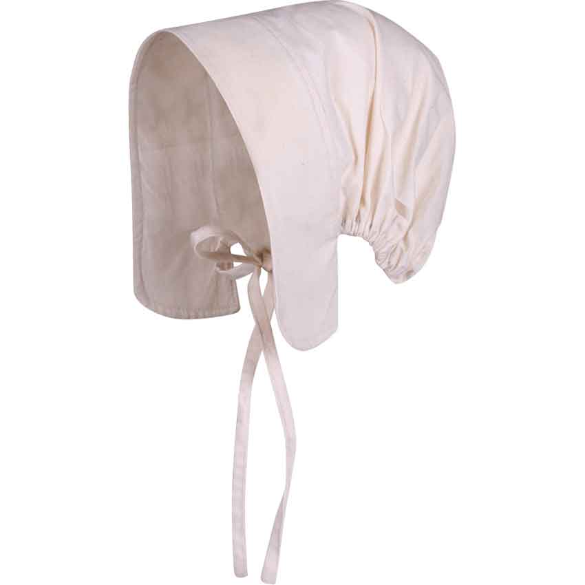 A lady of any status wore a bonnet, including the wives of farmers, merchants, or traders. The Greta Maidservant Cap is a great accessory and is available in one size and in five colors. You can wear the cap as is or decorate it to fit your desired costume or character. A drawstring keeps the cap secured to the wearer. The brim keeps the sun and wind away from the face. Wear this medieval hat at any fantasy convention, historical reenactment, or LARP event.