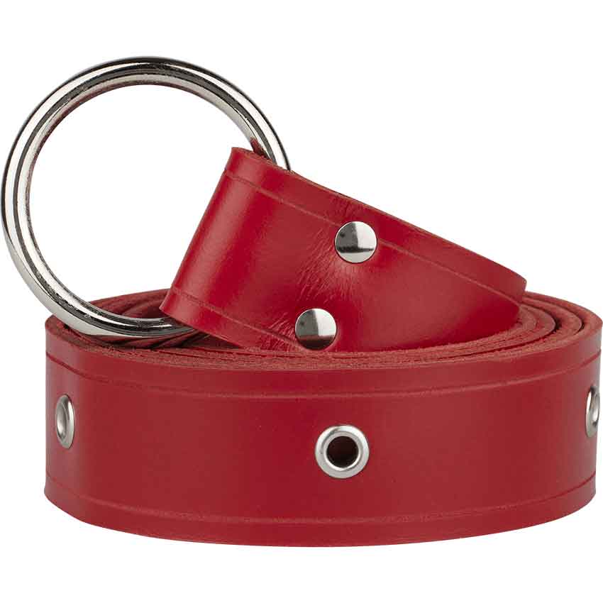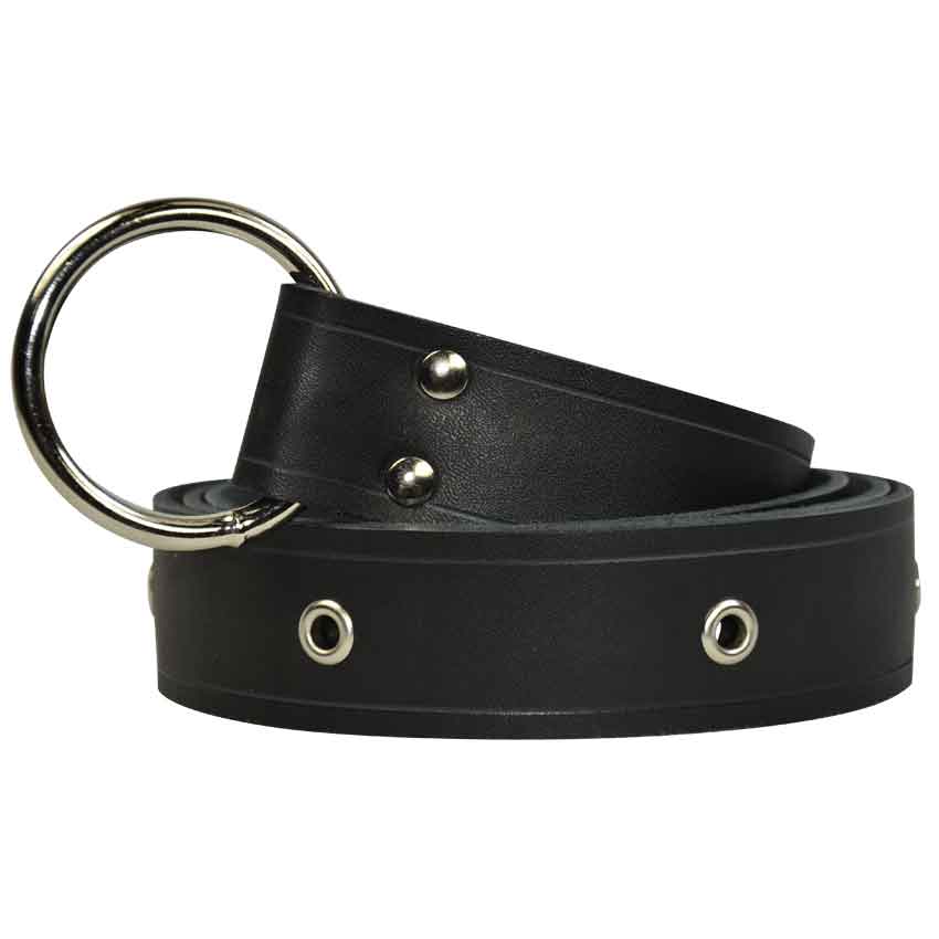 This leather Ring Belt features grommets down the full length of the belt. This brings detail to your outfit and also makes it convenient to tie any of your belongings to your belt. It is available in black, brown, dragons blood red, midnight blue, or forest green. You also choose your hardware color, either brass (gold) or steel (silver). This ring belt is available in lengths of 63 inches or 72 inches. It is made of sturdy 7/8 oz. leather.