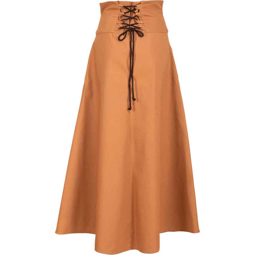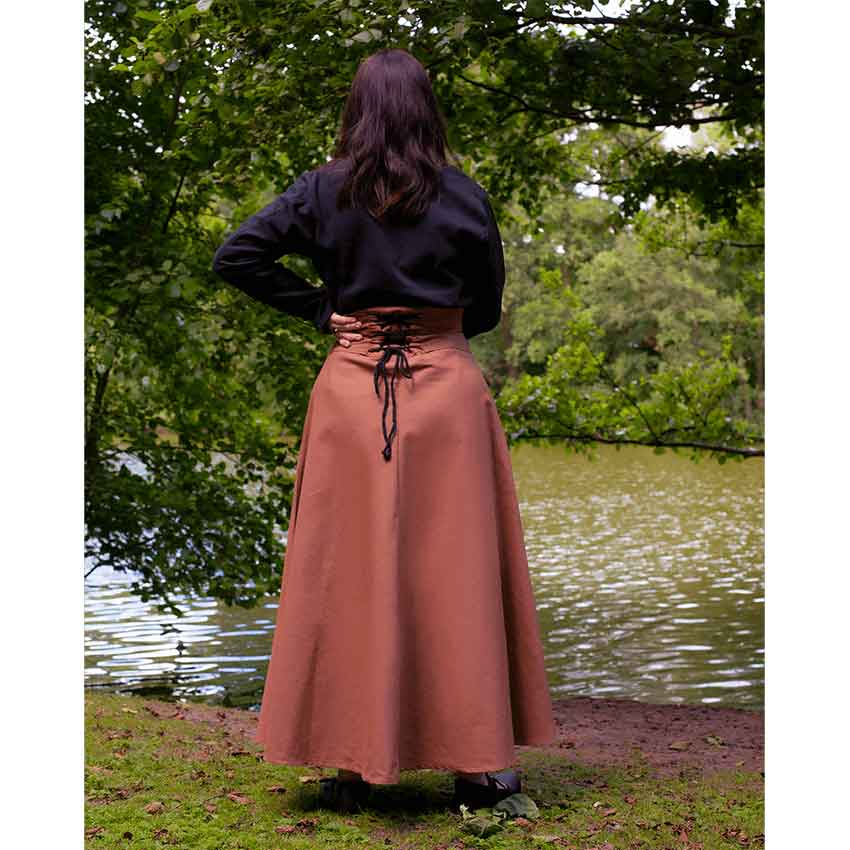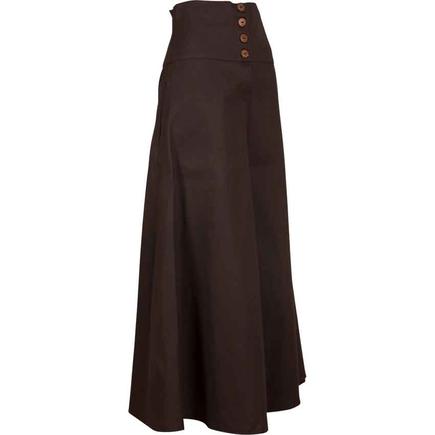 Designed for those who cherish the allure of the Middle Ages and crafted from cotton canvas, this Mytholon skirt beckons you to recreate the magic of those bygone times. The canvas weave is sturdy and perfect for creating an authentic historical look. Featuring an ankle length and a flattering drape, this medieval skirt has an adjustable waistline and hidden pockets. Hidden on either side of the waist, these pockets add practicality and convenience to your look. The high waisted skirt combines the flattering look of a form-fitting waist cincher with the flow of a long skirt. The section around the waist features four decorative buttons in the front. Adjust the skirt for the perfect fit with lacing at the back.