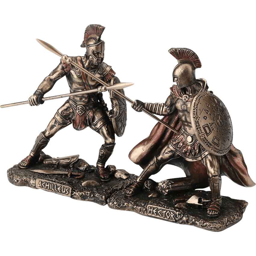 Bring the epic climax of the Trojan War to life with these Hector Fighting Achilles Statues. These statues are a stylish statement of martial prowess, Greek tragedy, and Trojan valor.