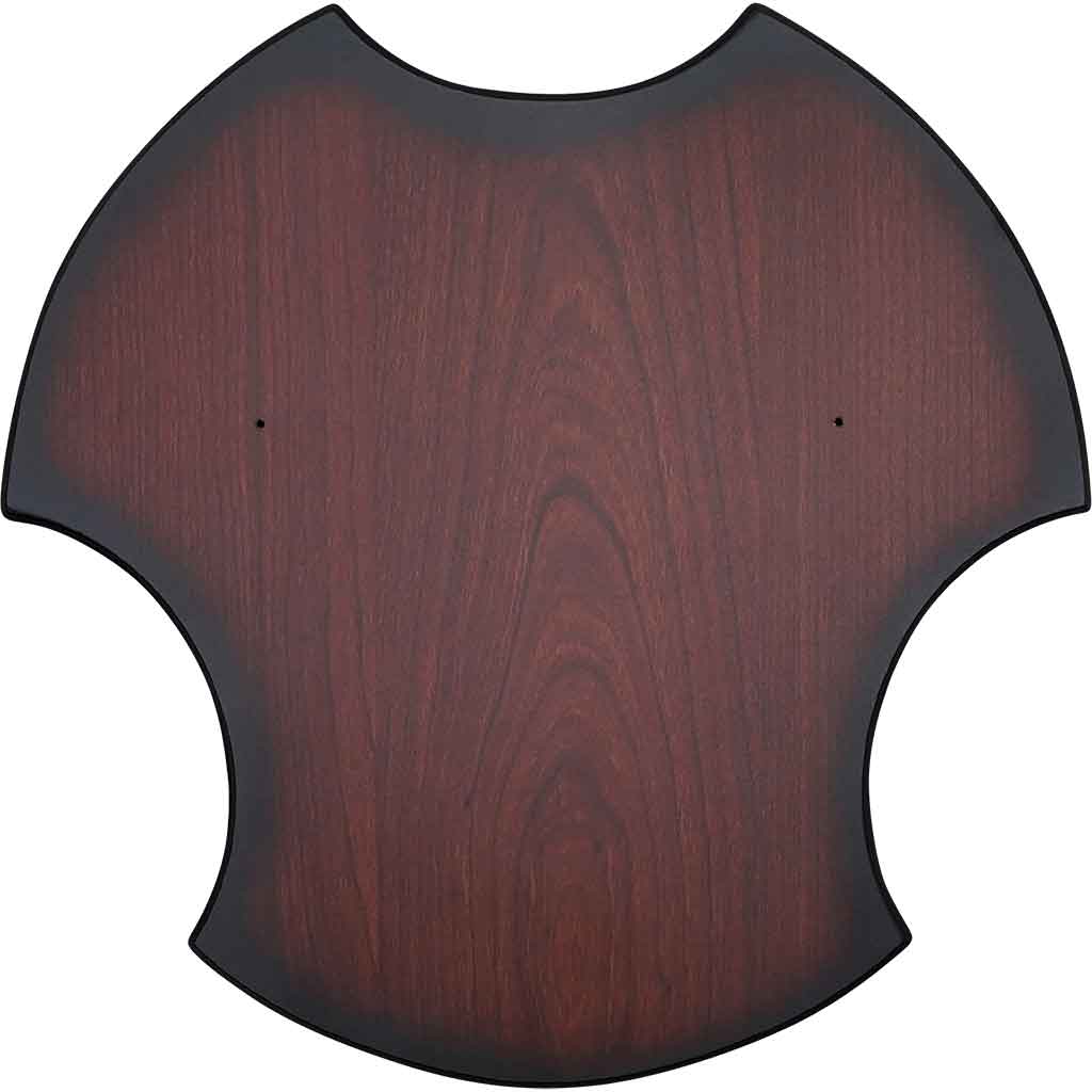 This decorative sword comes with a wooden display plaque. The plaque is dark brown for rustic charm. It’s shaped like a circle with notches on three sides, making it resemble a fantasy-style shield. The wooden display plaque makes it easy to place this decorative fantasy sword in your decor.