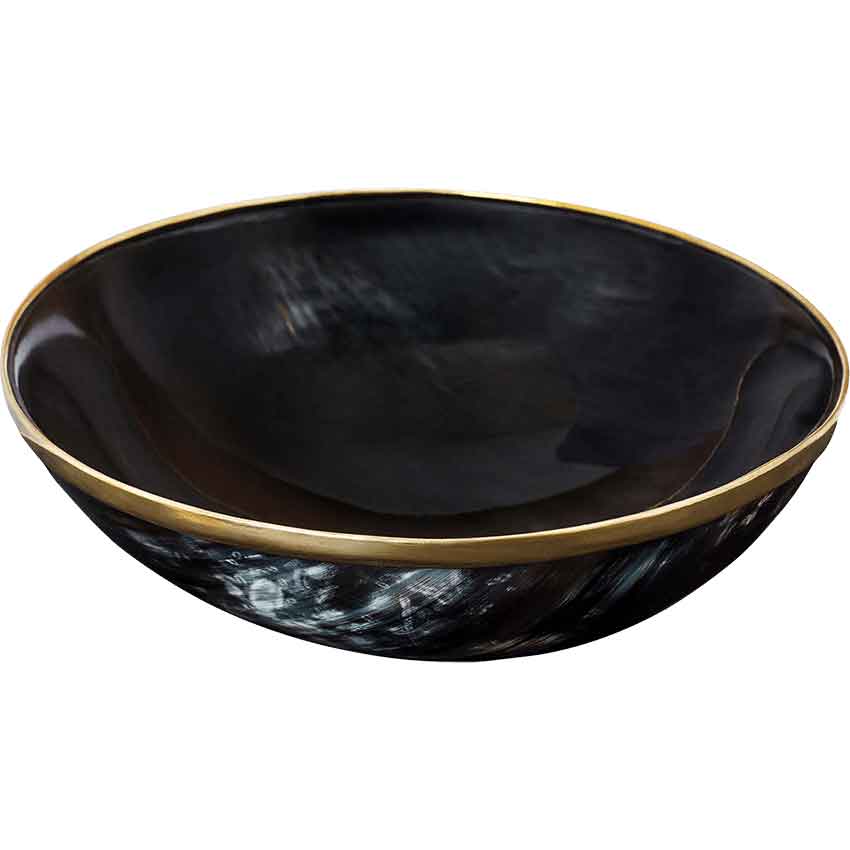 Elevate your dining experience with the Horn Bowl with Brass Rim, where functionality meets artistry. Enjoy feasts in your abode with style and an authentic medieval touch thanks to this brass rimmed bowl.