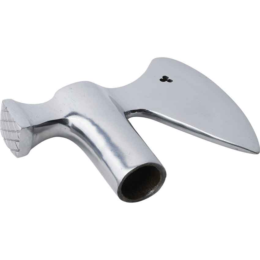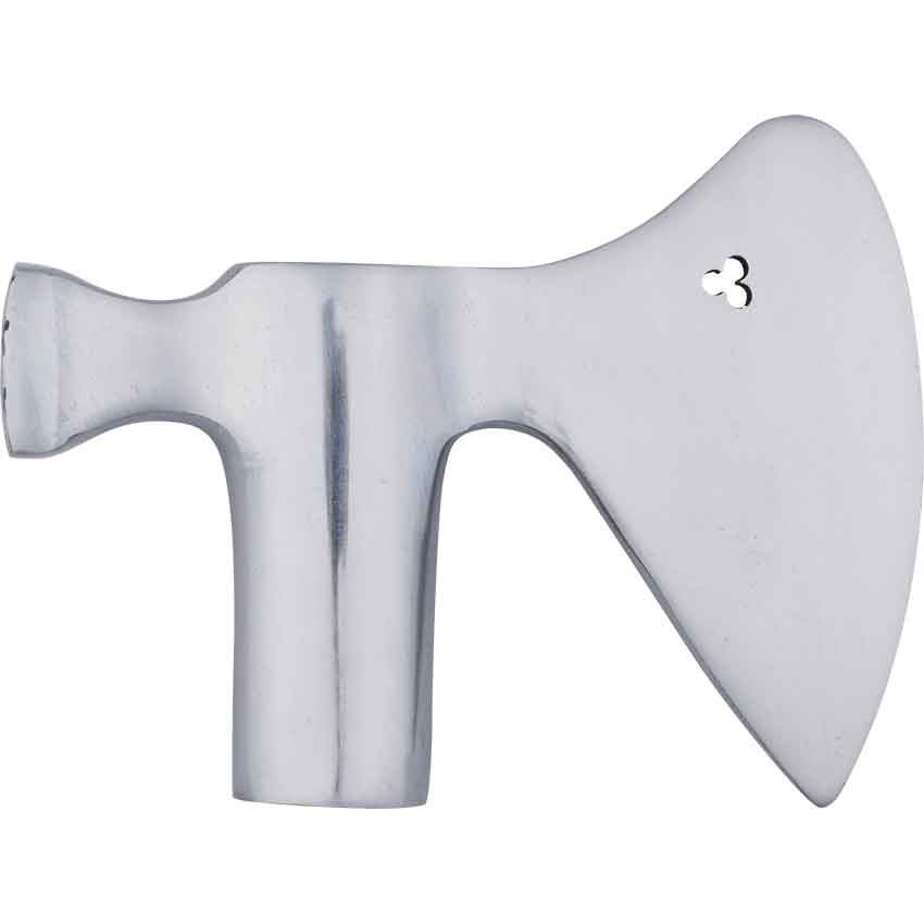 As time went on, war hammers and other blunt weapons became more important to the horseman. Create your own version with the Horseman Hammer Axe Head. Made from carbon steel, this axe head is not pre-treated with oil. The buyer can oil it, if desired. The back of the head forms the hammer and has crosshatching engraved into it. The bearded blade features a trefoil pierced through the head. With a single socket, the head can attach to a haft, not included. This decorative axe head is a great addition to any collection or as part of a DIY project.