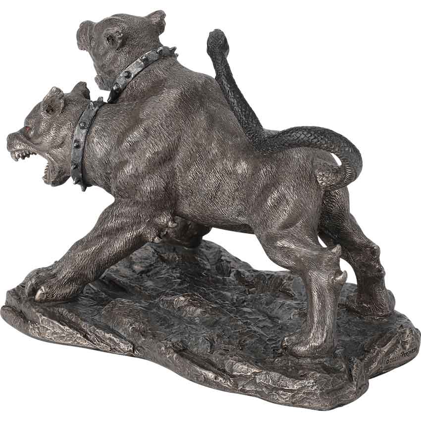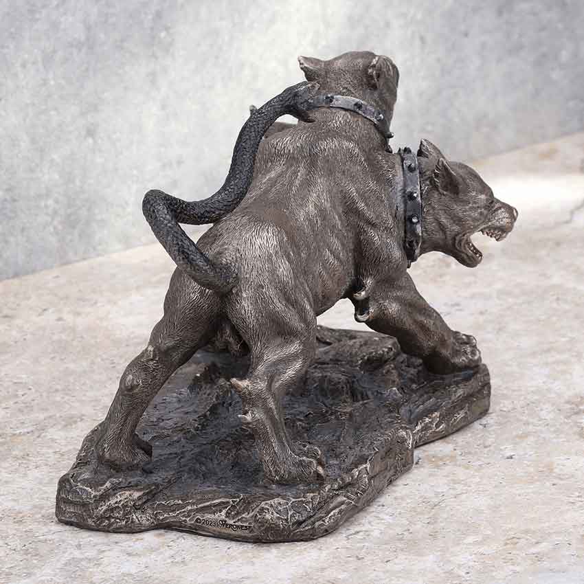 - Decorative Appeal: The statue’s menacing spiked collars and snake-headed tail add to its mythological allure, making it a standout piece in any collection.